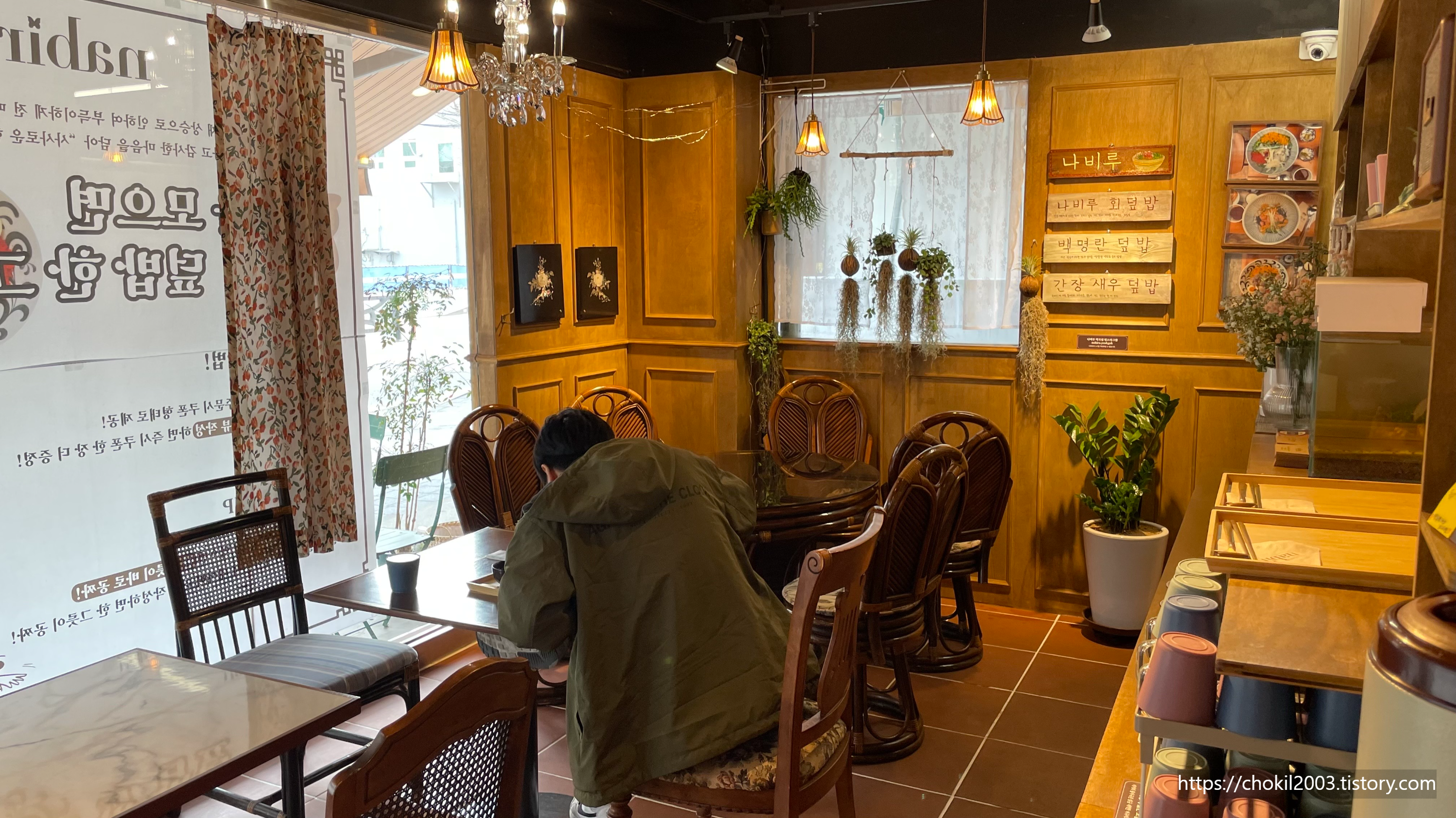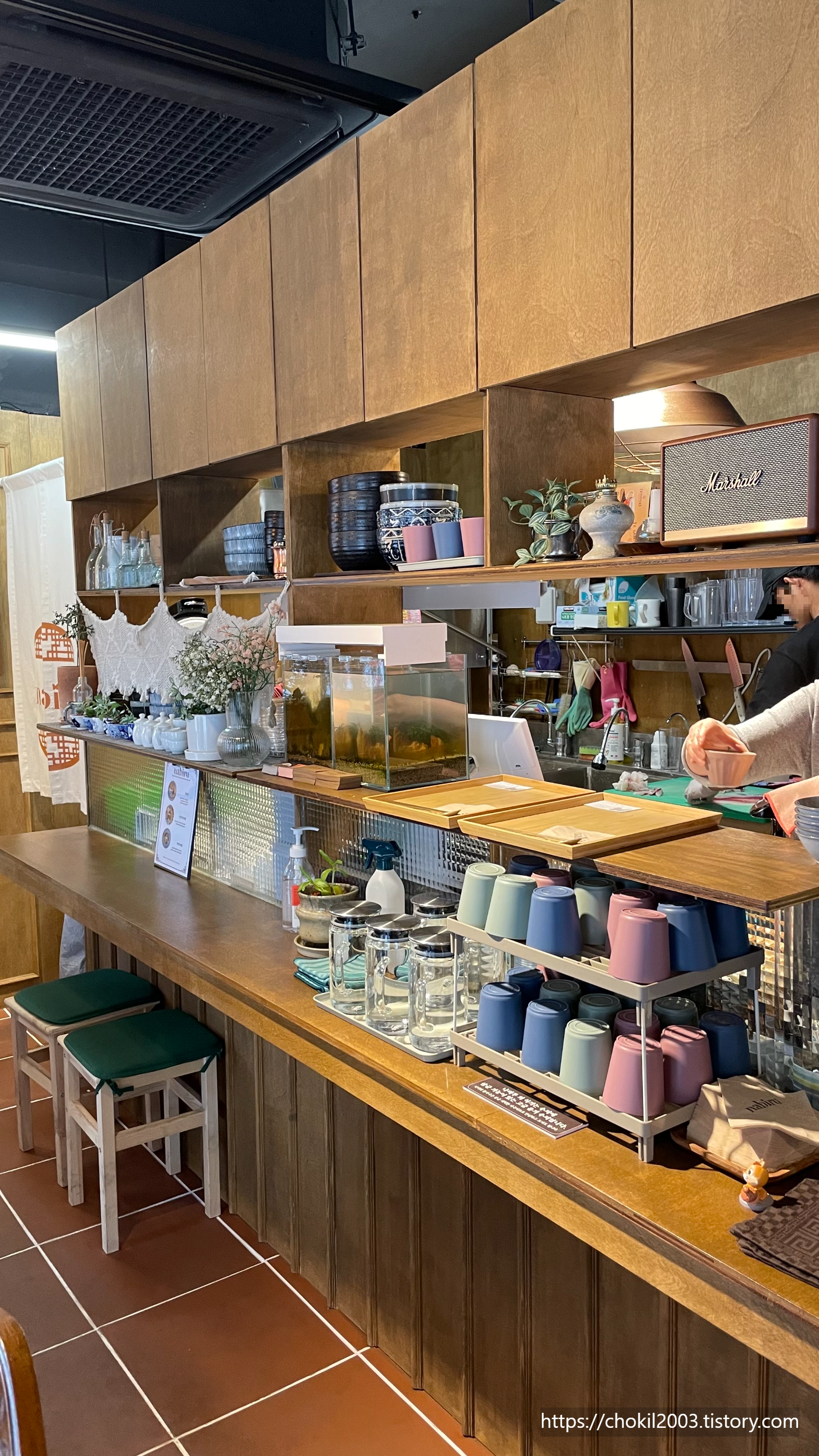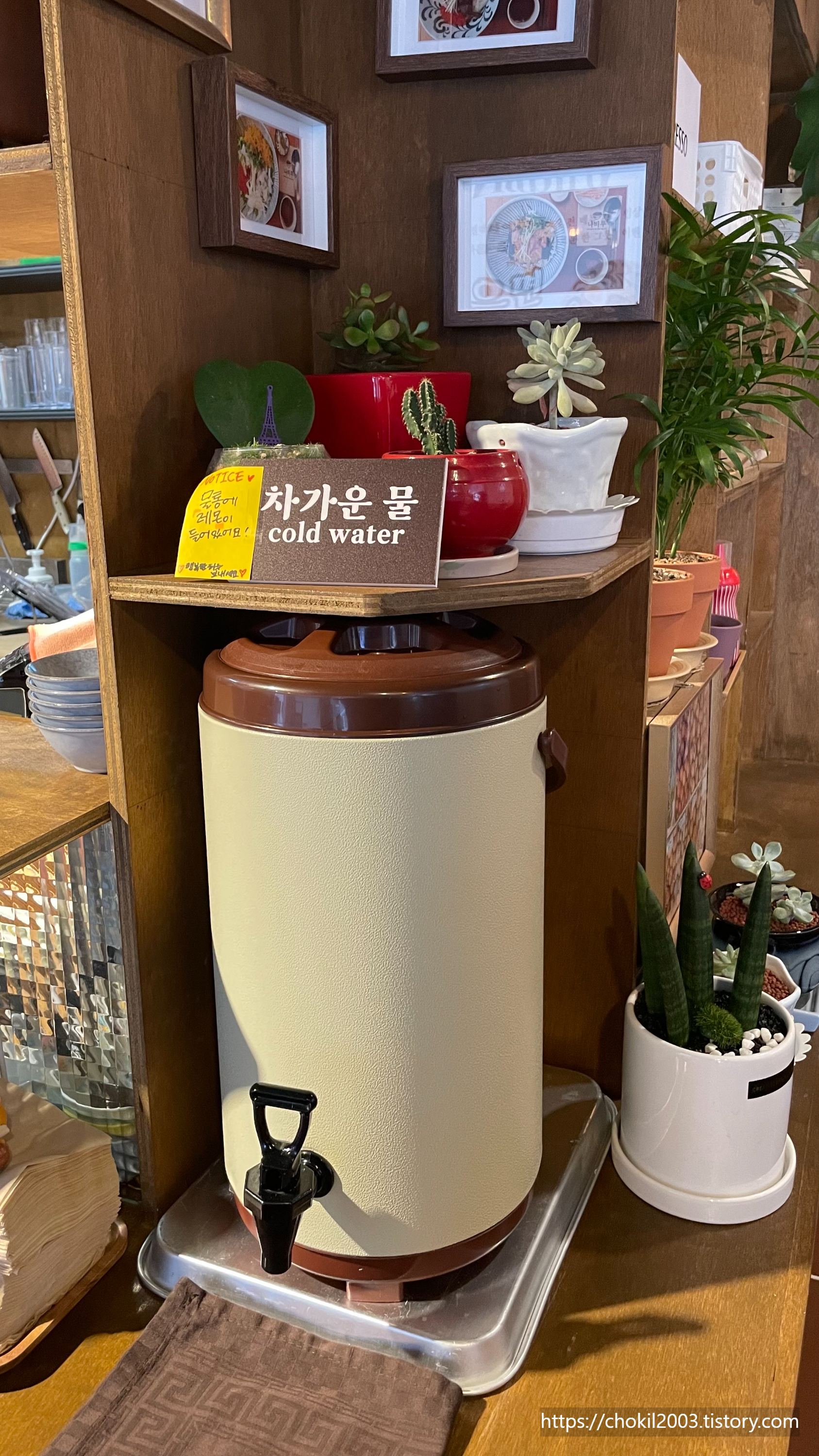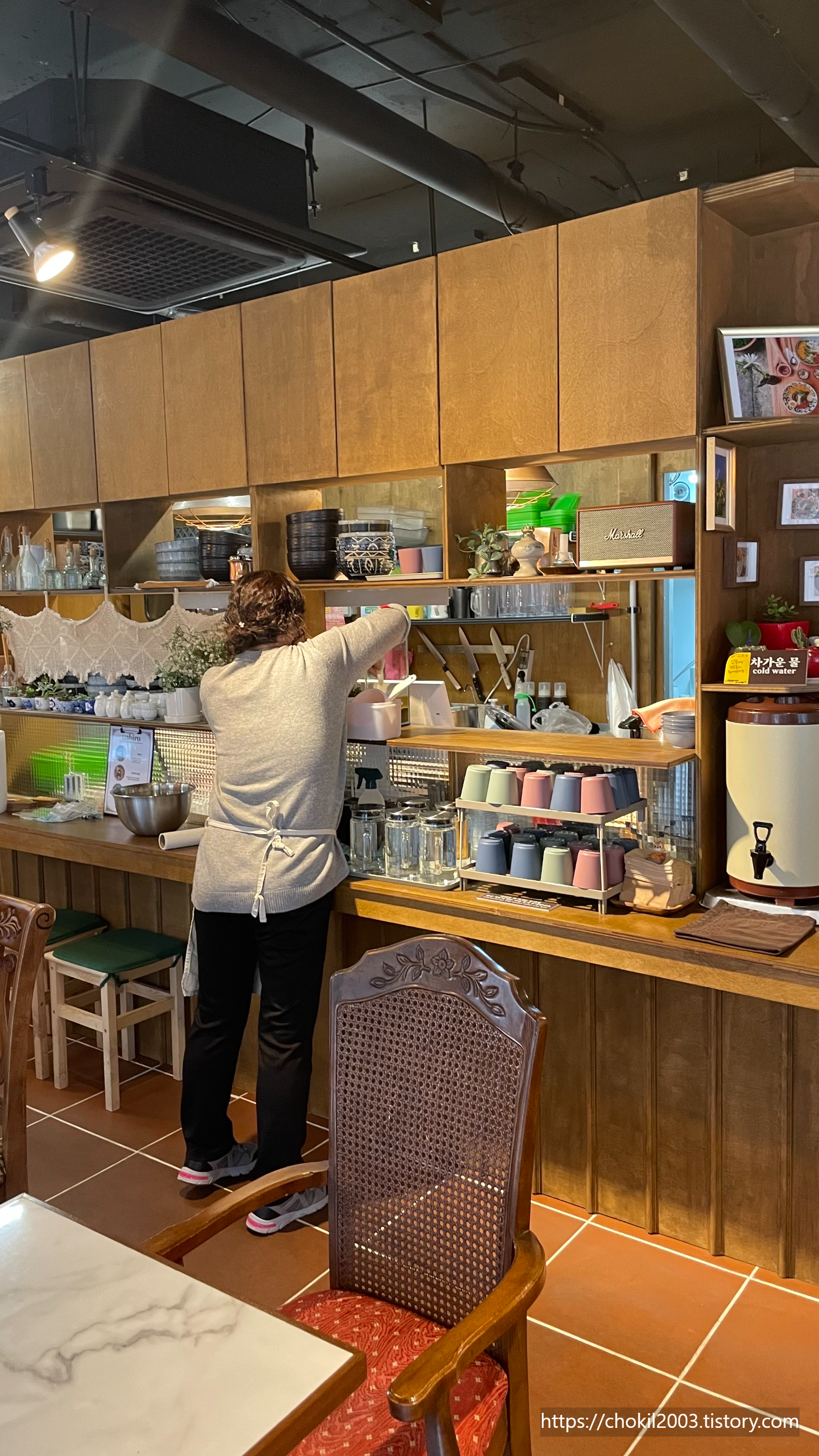 정면에는 조리하는 곳이고 컵과 그릇 등등이 눈에 들어오네요.