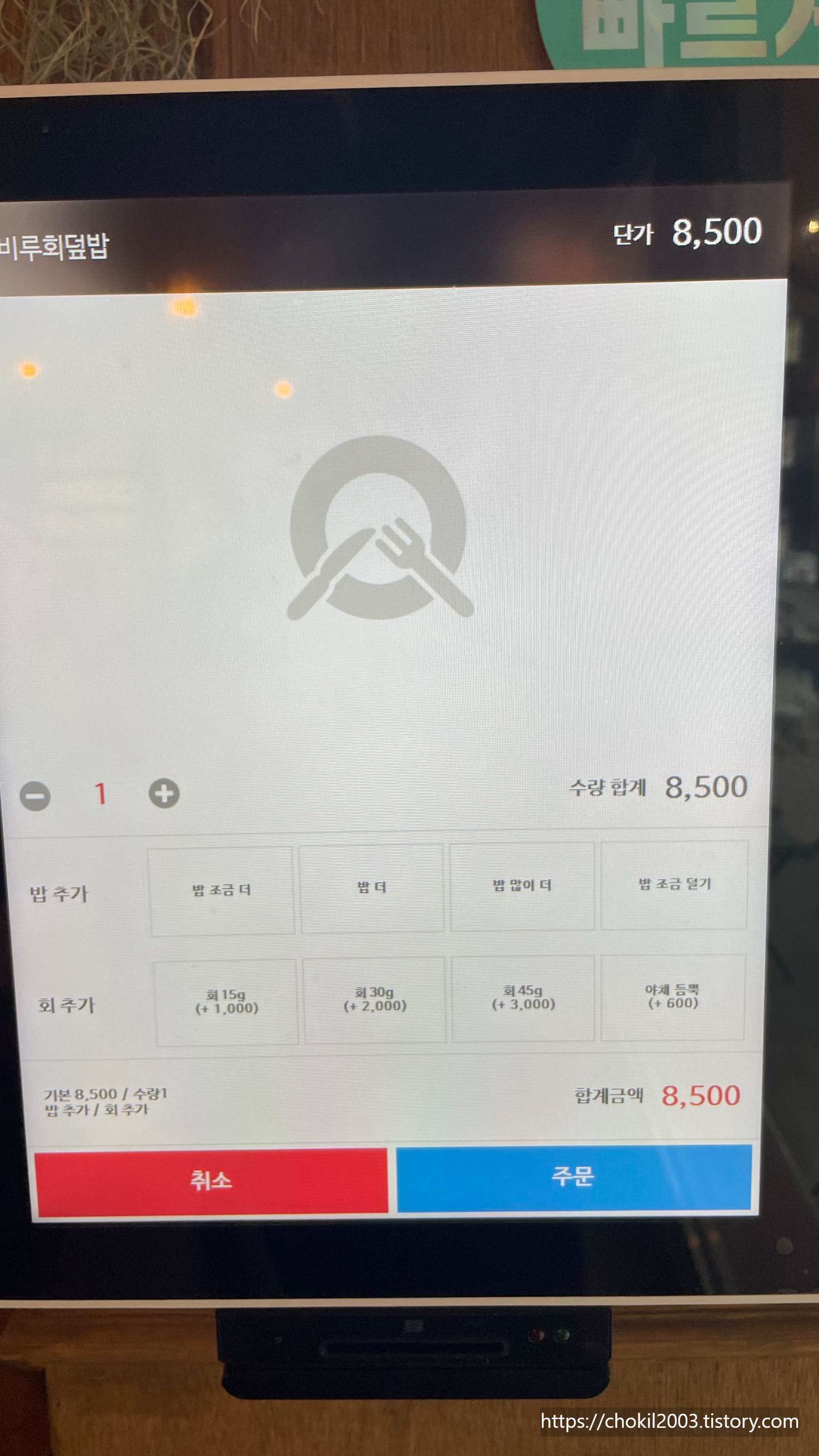 저는 밥 많이 더를 누르고 주문했습니다.
