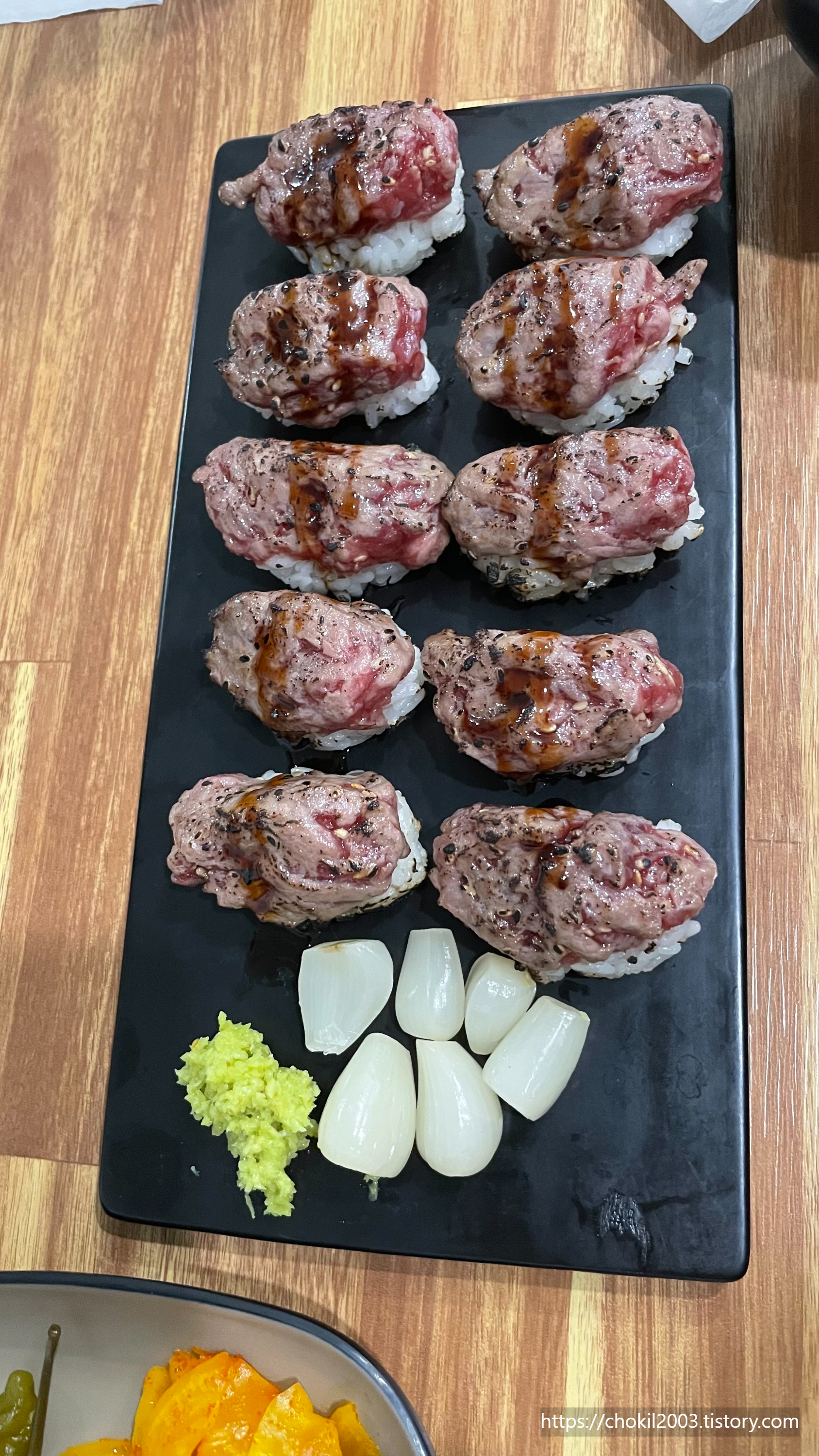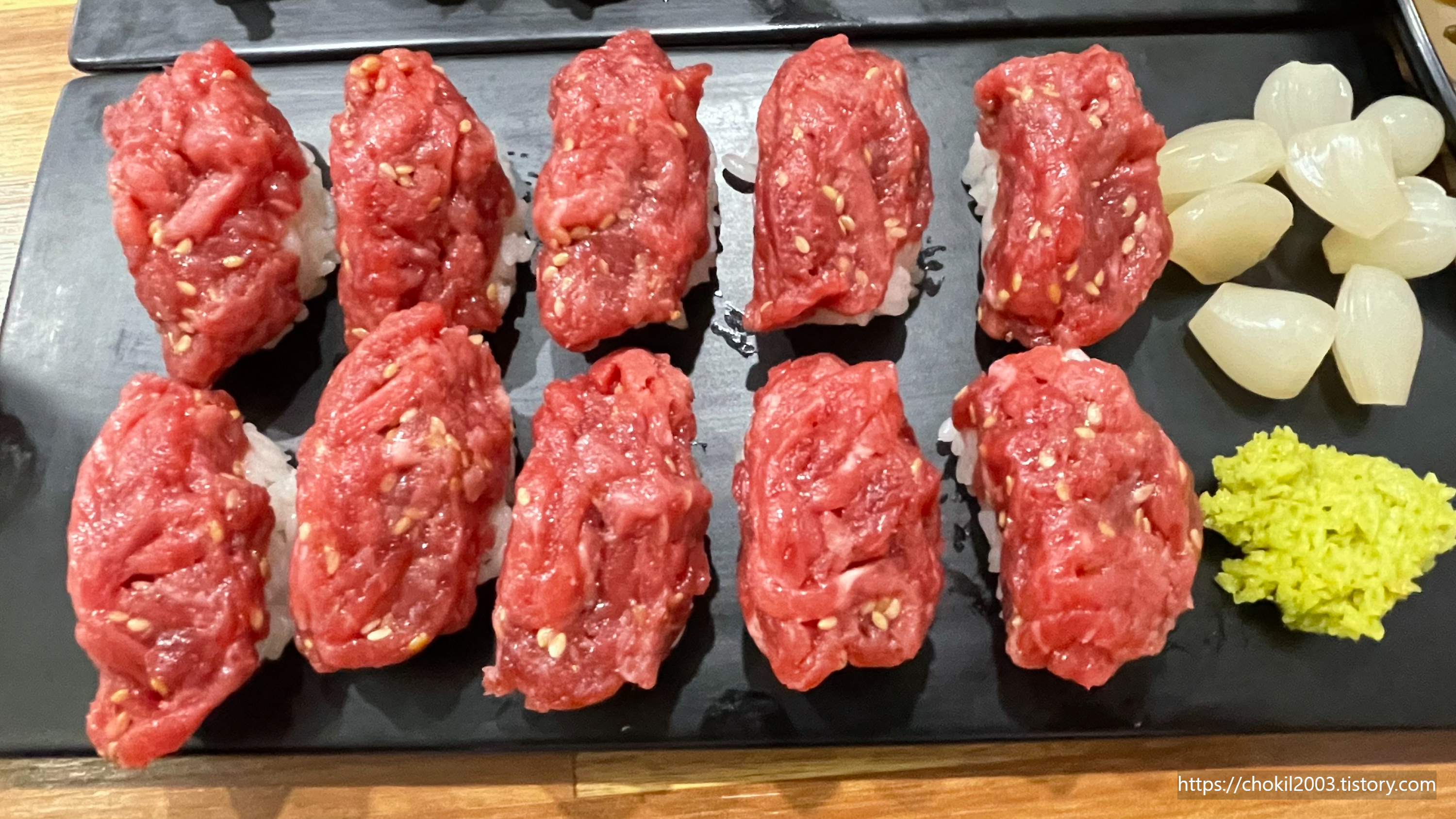 개인적으로 연어보다는 육회 초밥 종류를 먹는 것을 추천드립니다.