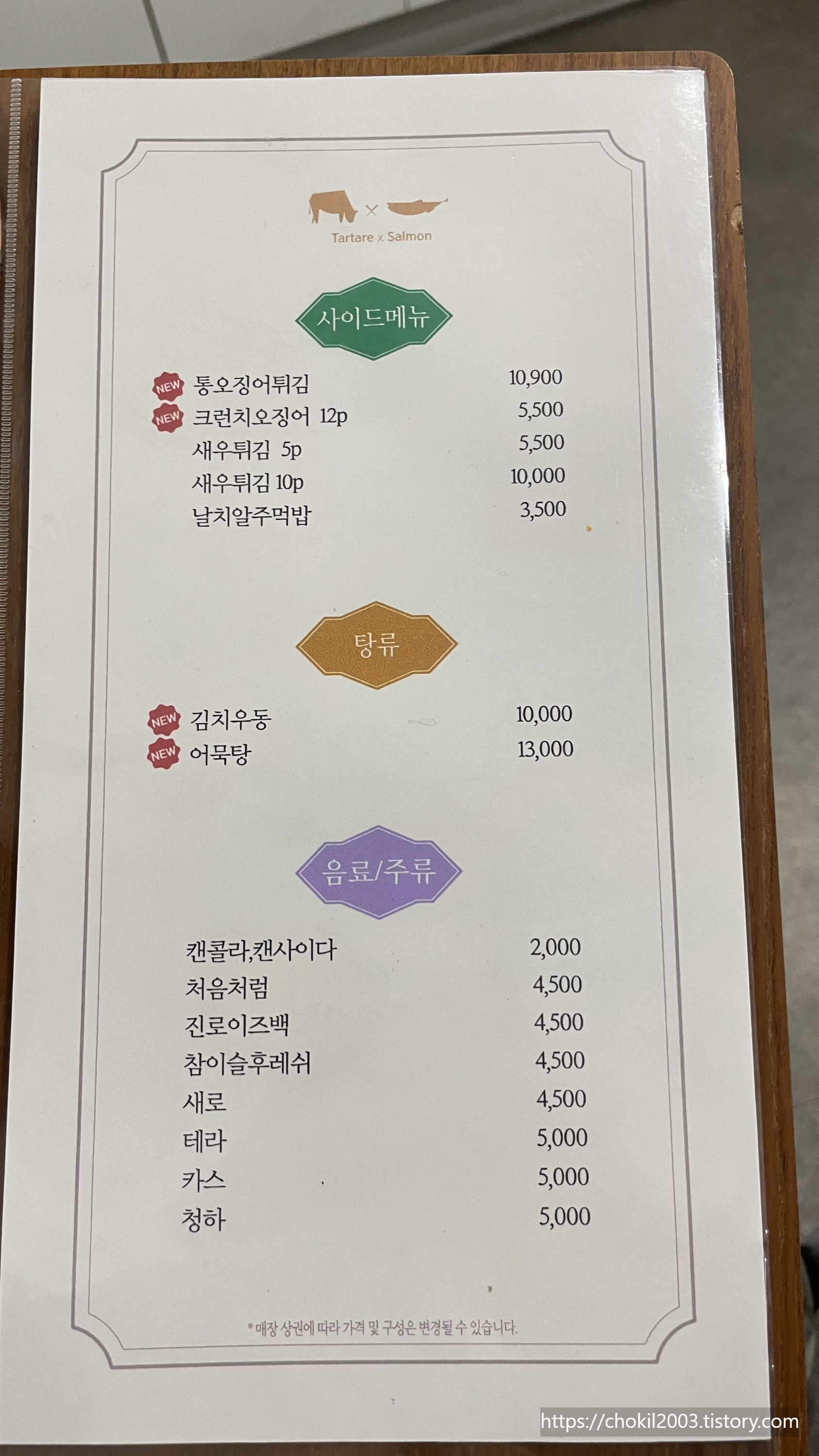 메뉴판인데요!