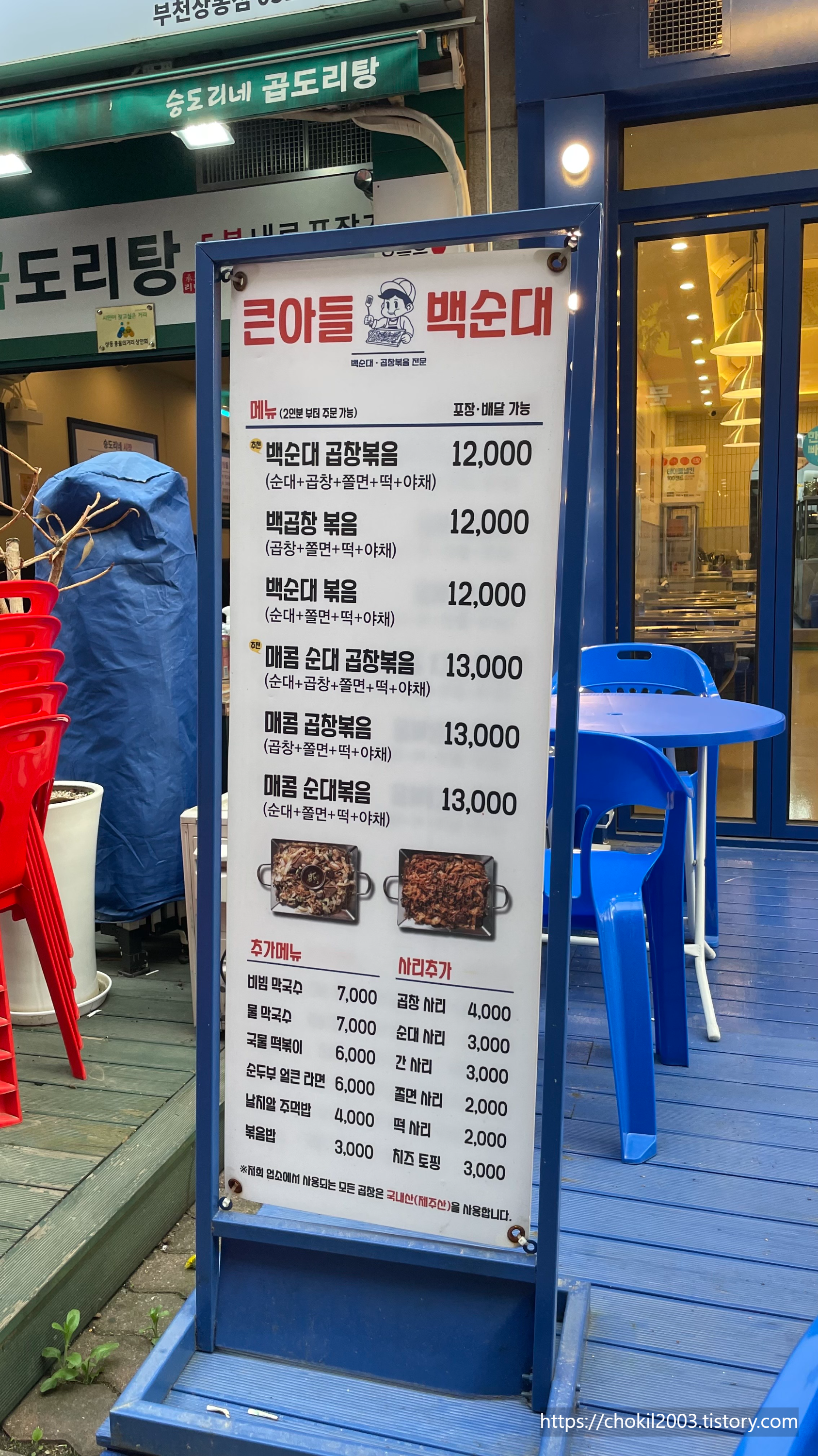 오늘 제가 가볼 곳은 상동역 근처 큰아들백순대입니다.