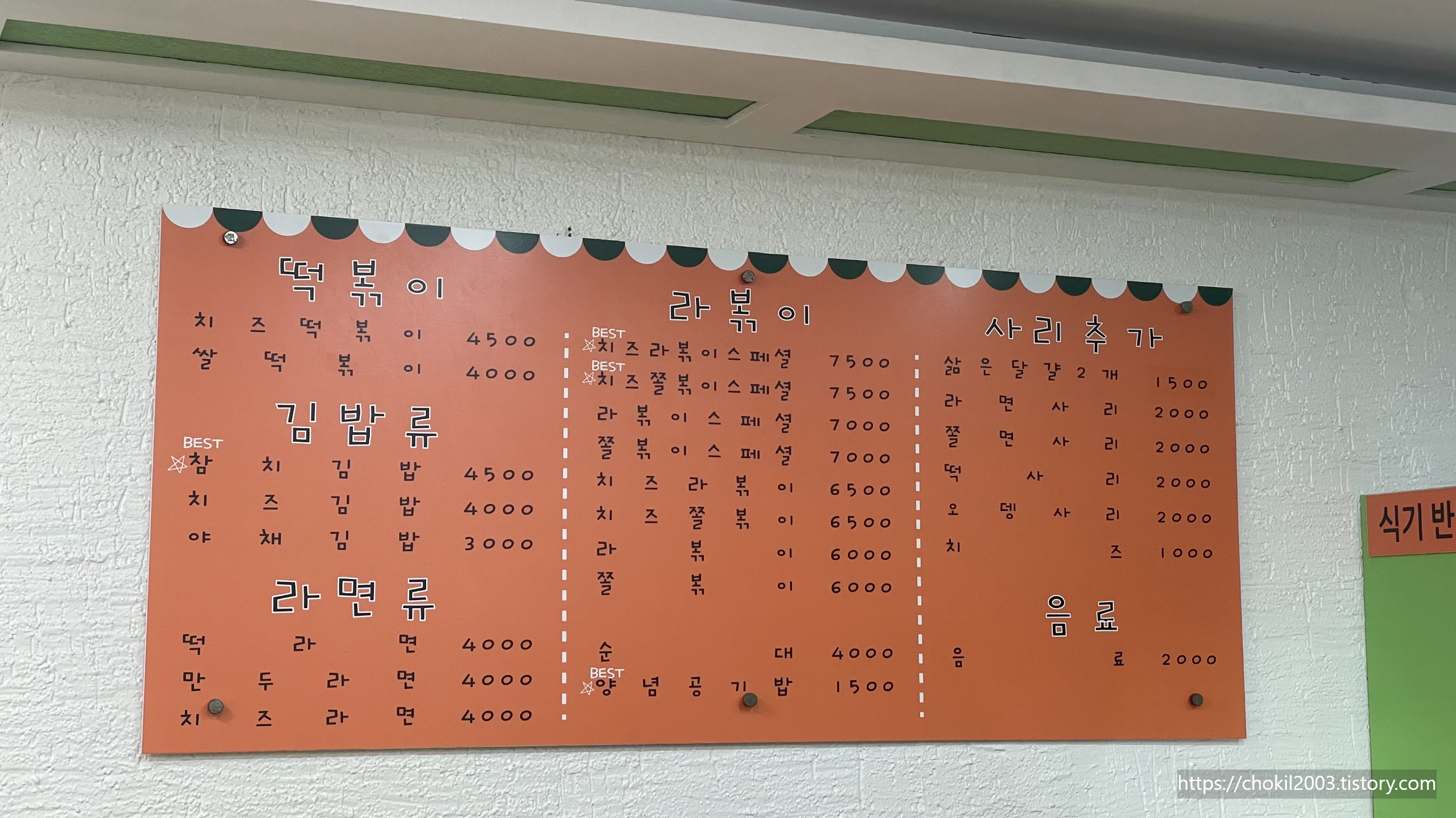 치즈떡볶이가 4500원이고 라볶이 스페셜 종류는 7500원입니다.