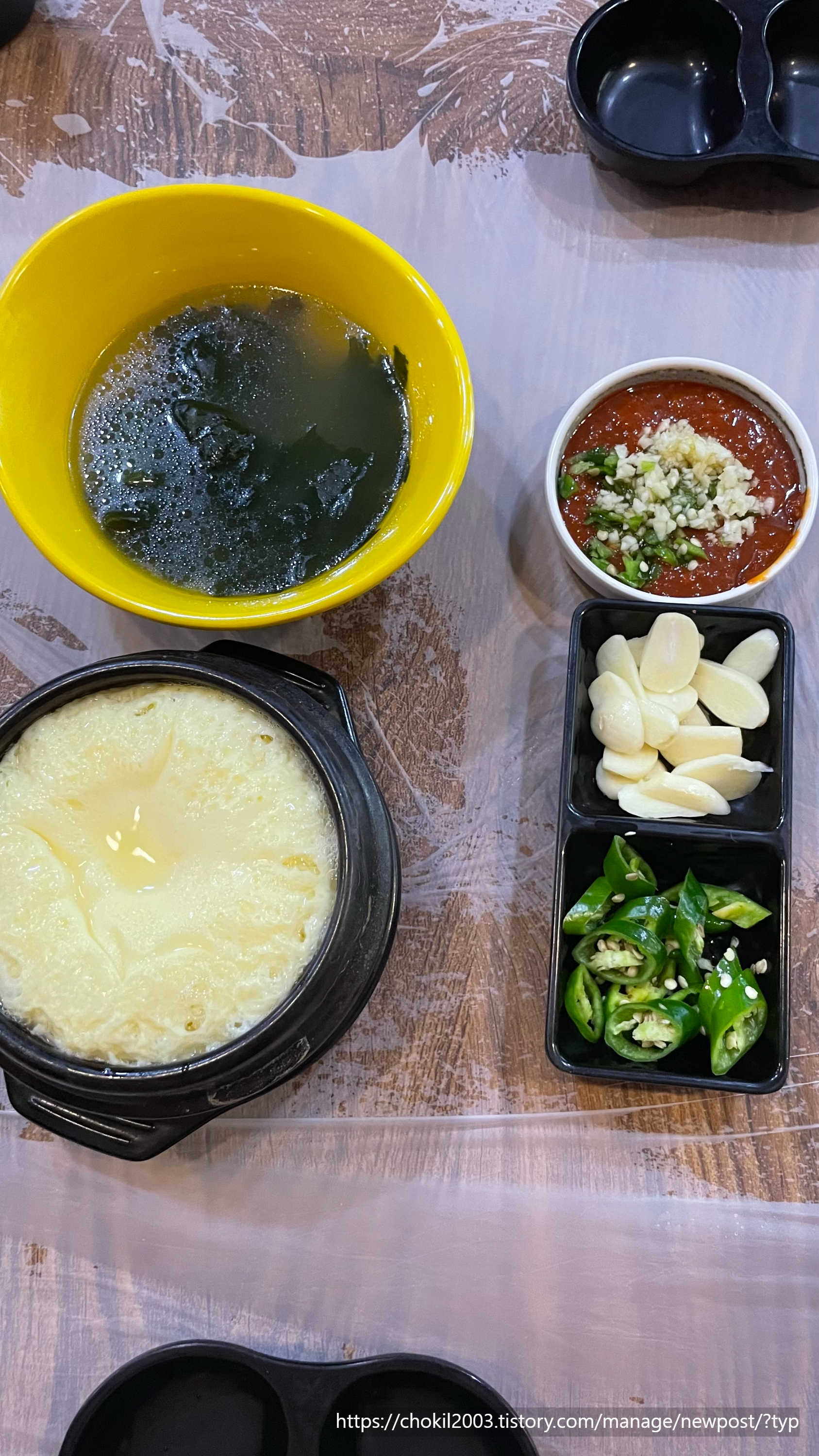 그리고 여기 다진 고추와, 마늘과 쌈장이 있는데요!