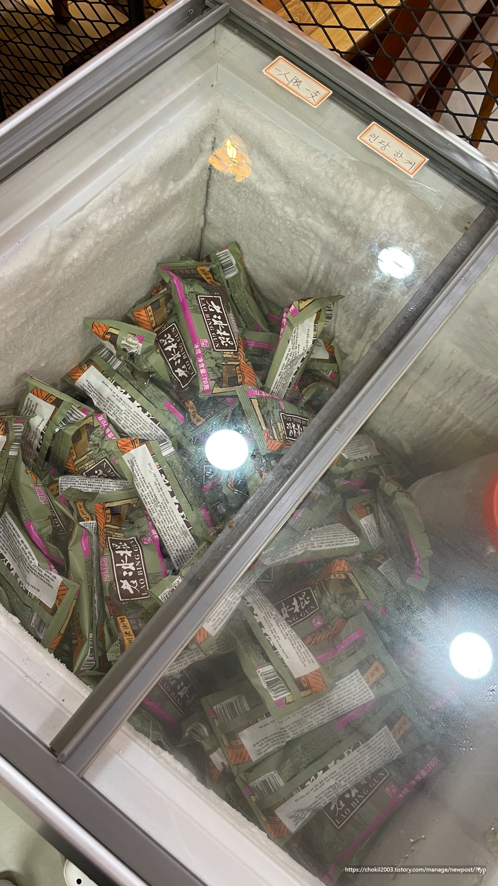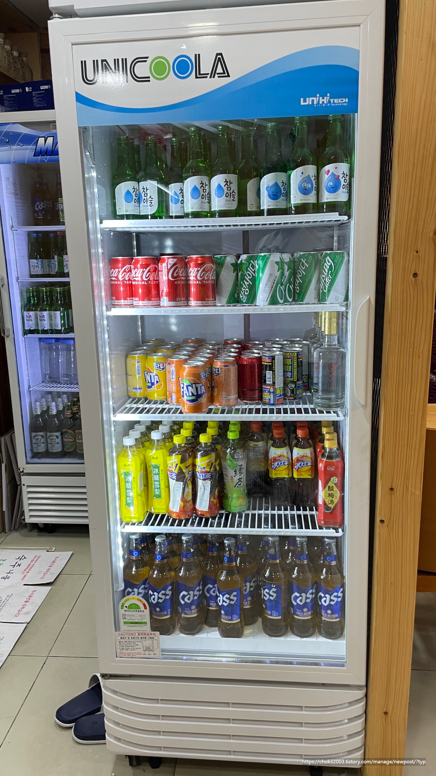 냉장고에는 한국 음료와 술, 중국 음료와 술이 있었어요!