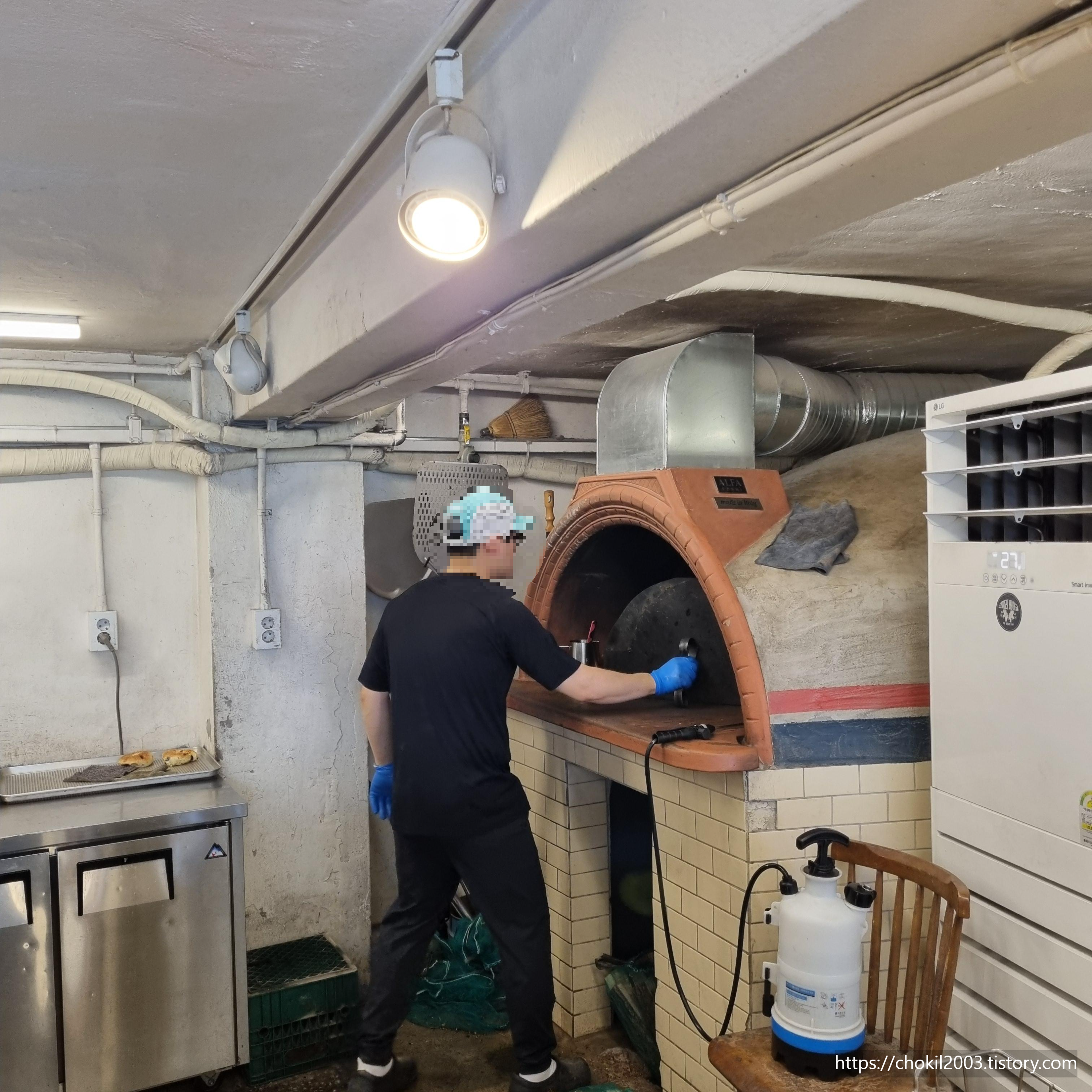 뜨거운 화덕에서 열심히 굽는 모습도 보입니다.