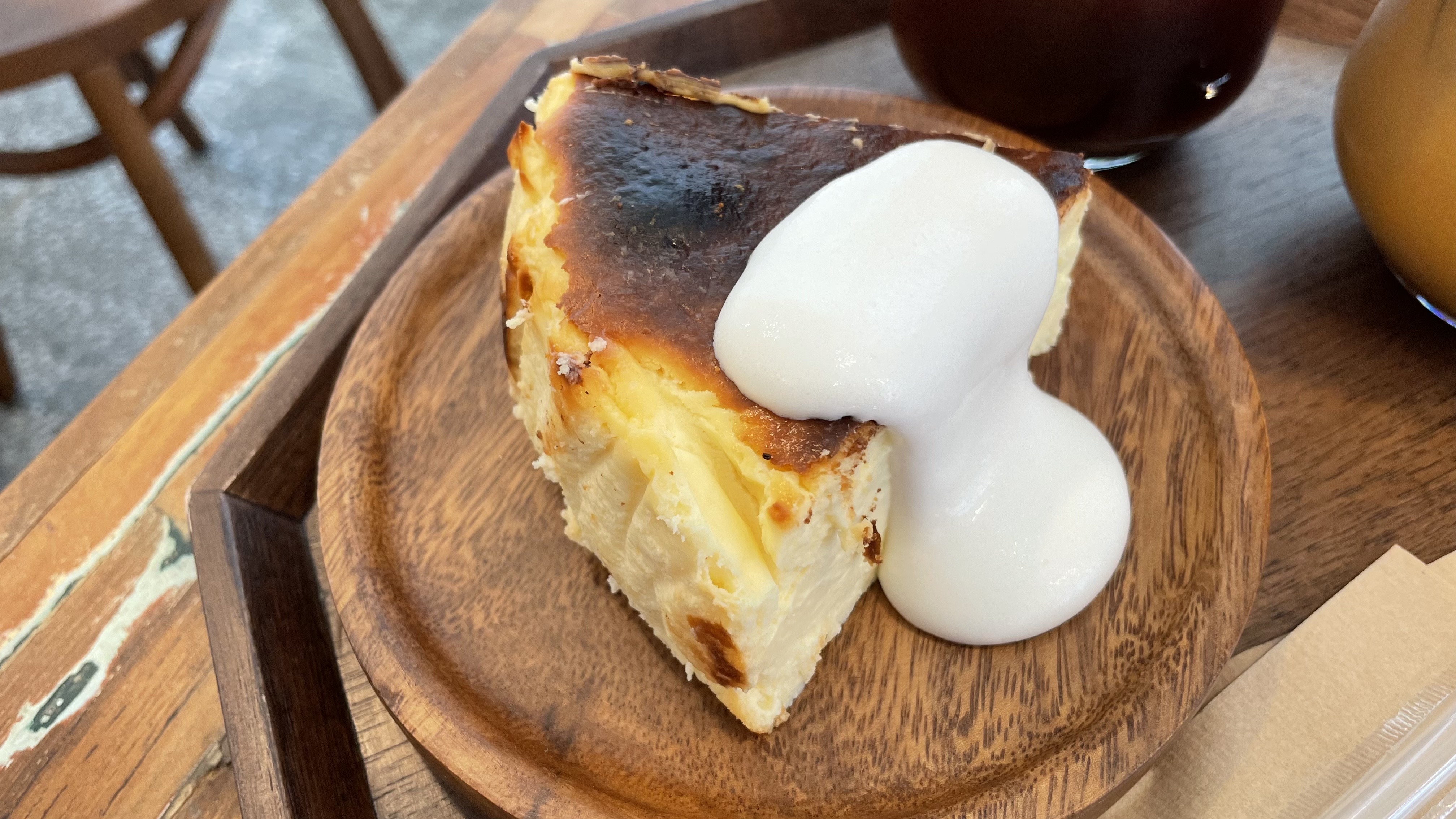 바스크 치즈케이크는 전통적인 치즈케이크로 꼬독꼬독하고 쫀득한 치즈케이크입니다. 크기도 크고 크림에 찍먹 하면 더욱더 맛있게 즐길 수 있어요. 아이스 아메리카노와 잘 어울리며 여기 대표 디저트입니다. 포크로 조금씩 먹으면서 커피 홀짝홀짝 맛있게 먹었어요.