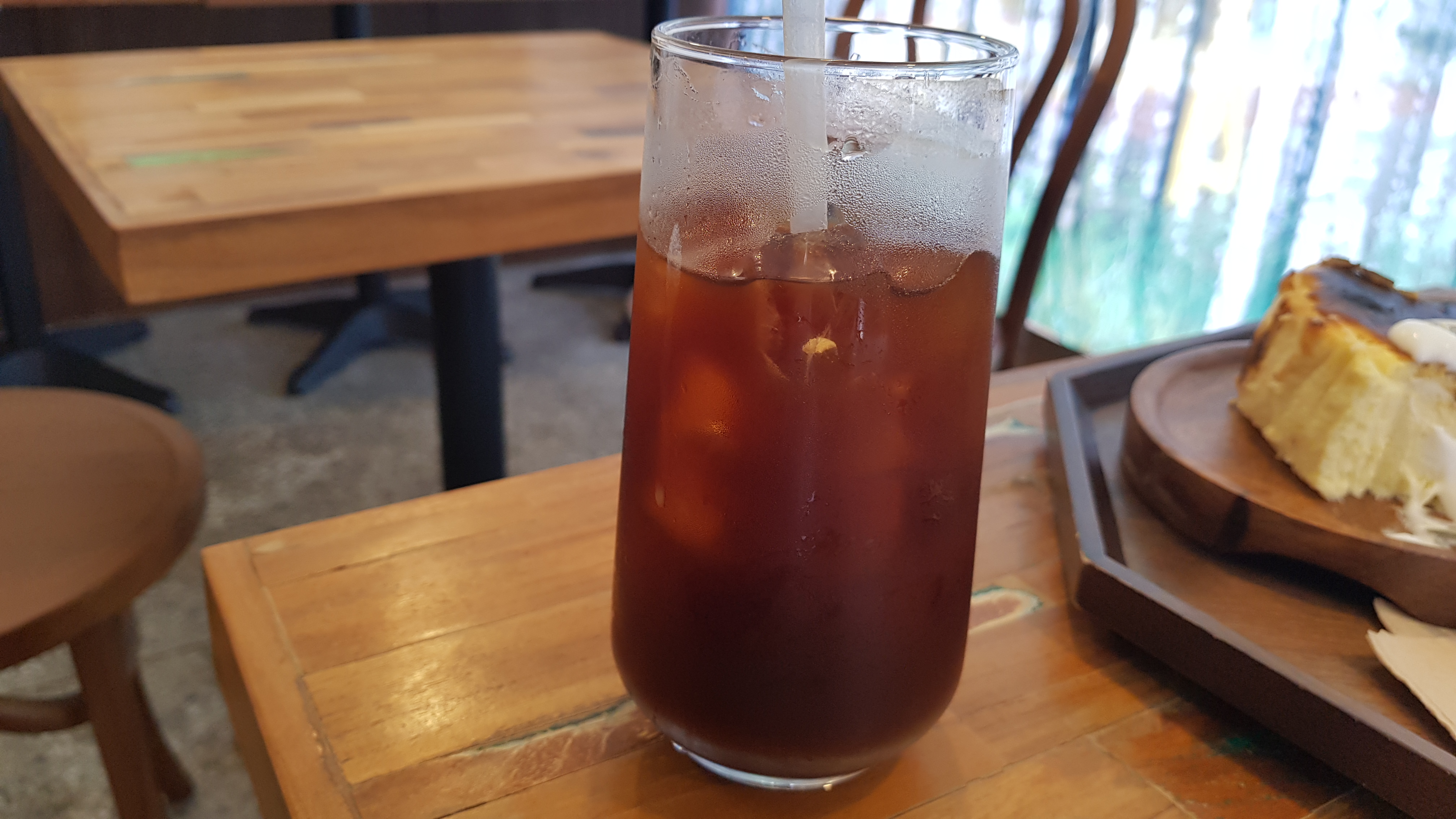 아이스 아메리카노인데요. 긴 유리컵에 담아주셨어요. 얼음도 적당하게 들어가 있습니다. 시큼한 맛이 너무 좋았어요. 농도도 적당해서 디저트랑 먹기 좋았습니다. 탄맛은 전혀 없고 감칠맛은 중간 정도입니다. 커피 기름 맛은 없었습니다.