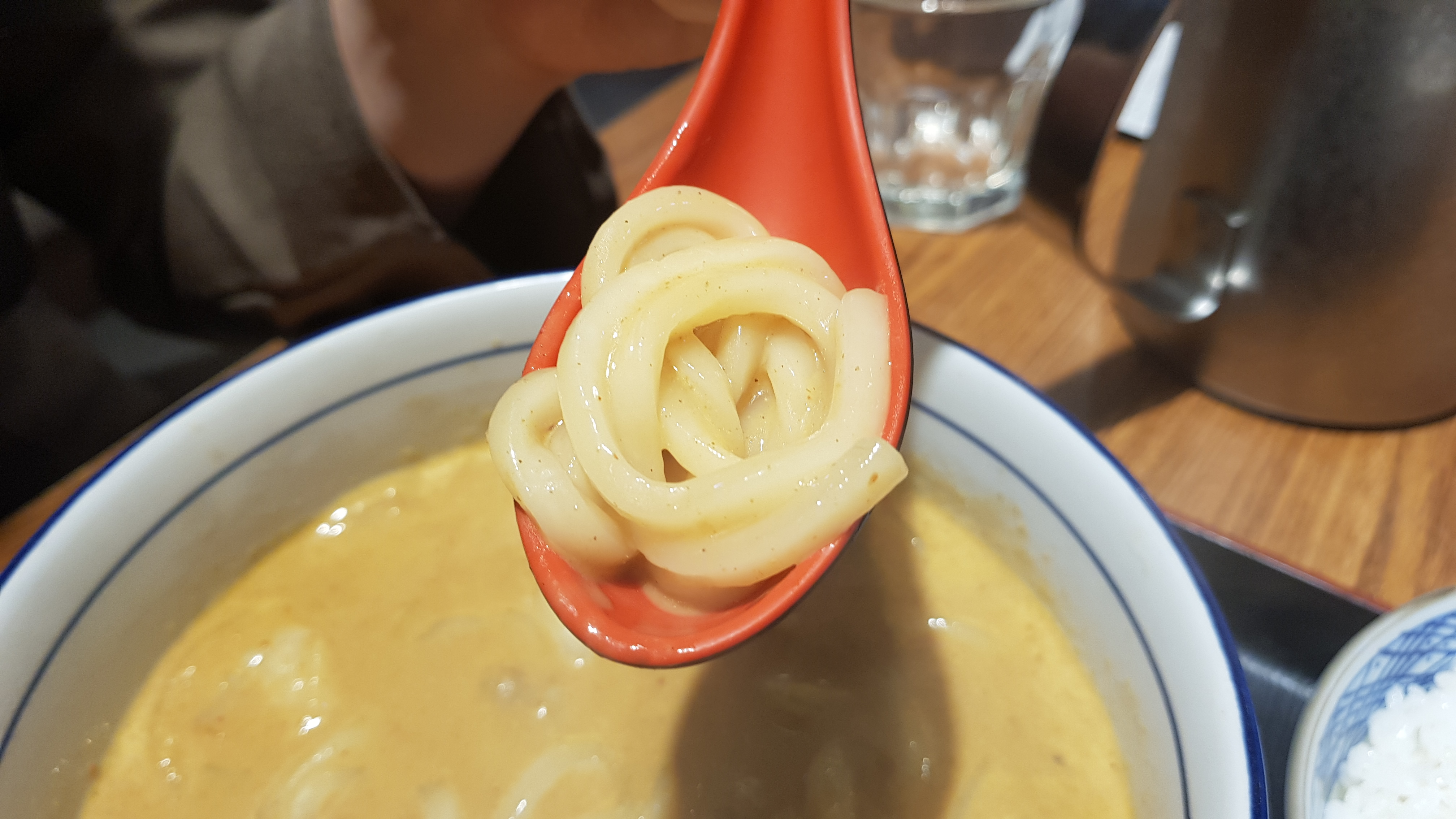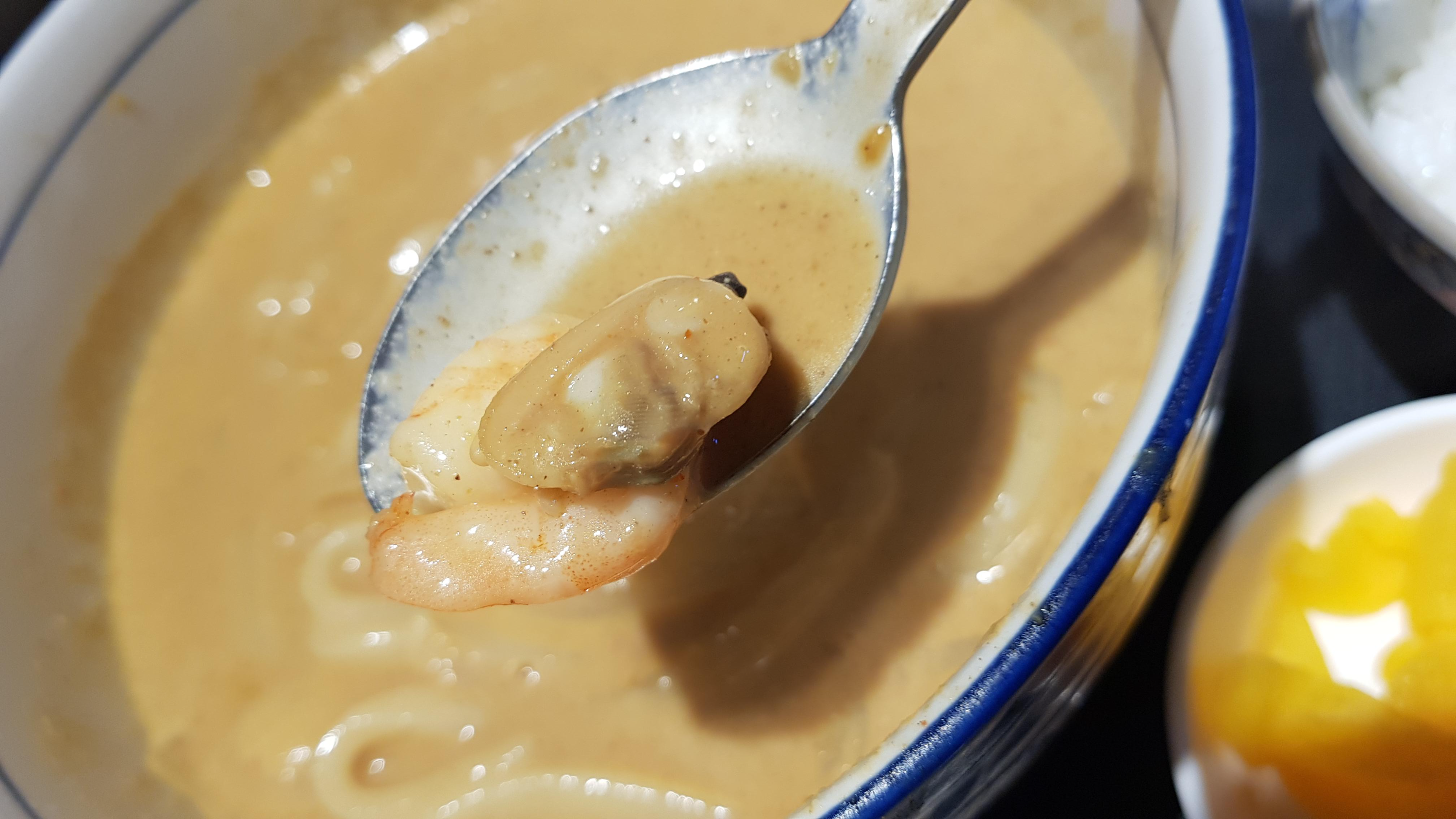 해물크림카레우동인데요. 새우와 조갯살이 들어갑니다. 카레와 크림이 들어가 부드러웠는데요. 카레의 매콤함과 잘 맞았어요. 우동과 국물을 먹으면 더욱더 맛있었는데요. 해장하는 느낌도 들었습니다. 한번 먹으니 계속 먹게 되었습니다. 밥도 따로 나오는데요. 밥이랑 같이 다 먹었어요. 해물이 그렇게 많이는 안 들어가져 있습니다. 해산물에 시원하고 부드러운 매콤한 카레 맛입니다.
