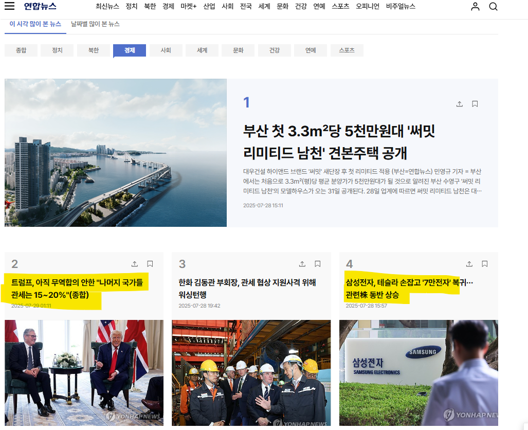 | [속보] EU·미국 무역 협상 타결! 15% 관세 도입 : 세계 & 증시 투자자 전략은? (4) | 2025.07.28 |