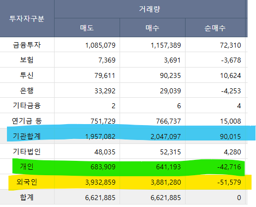 이럴 때 중요한 것이 외국인 기관이 무엇을 매수했는 질 알아봐야 하는데요!