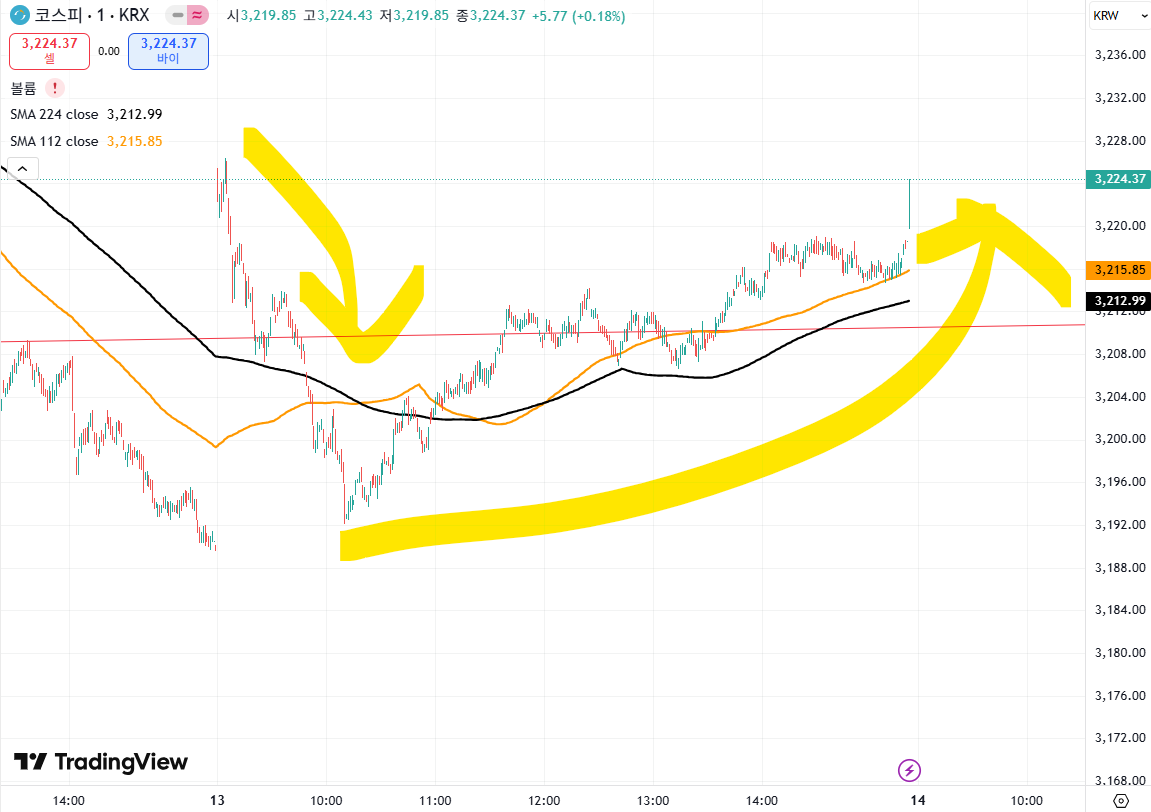 초반 하락하다 다시 3,200 포인트 상승했는데요!