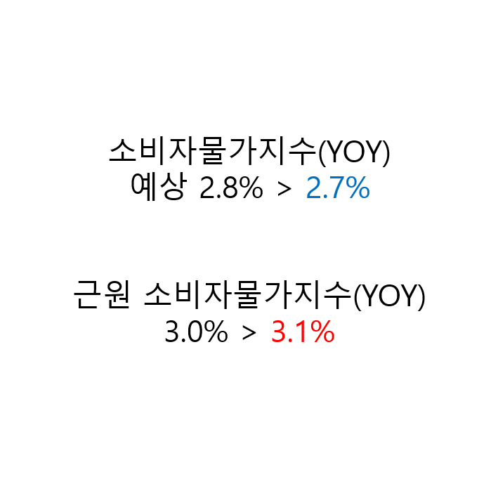 하지만 충분히 예상한 부분이고 소비자물가지수가 하락한 것을 시장에서는 긍정적으로 해석한 것 같습니다.