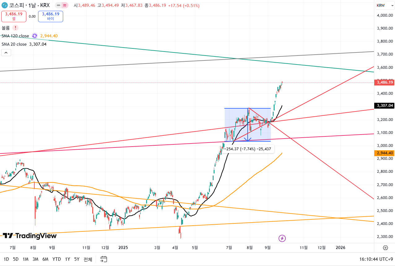 코스피는 3,486 포인트로 마무리를 했습니다.