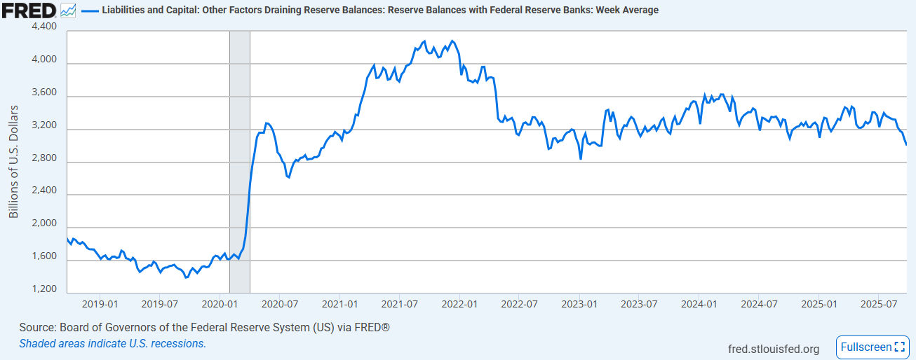 양쪽에서 돈을 흡수하니 지급준비금도 조금 하락한 모습을 보이고 있습니다.