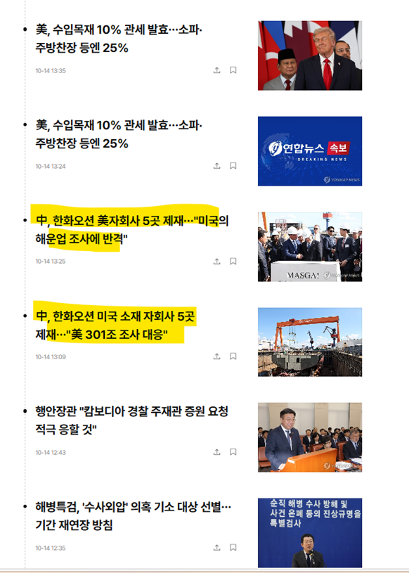 중국이 한화오션 및 그 미국 내 자회사 5곳을 제재 대상으로 지정한다고 발표를 했습니다.