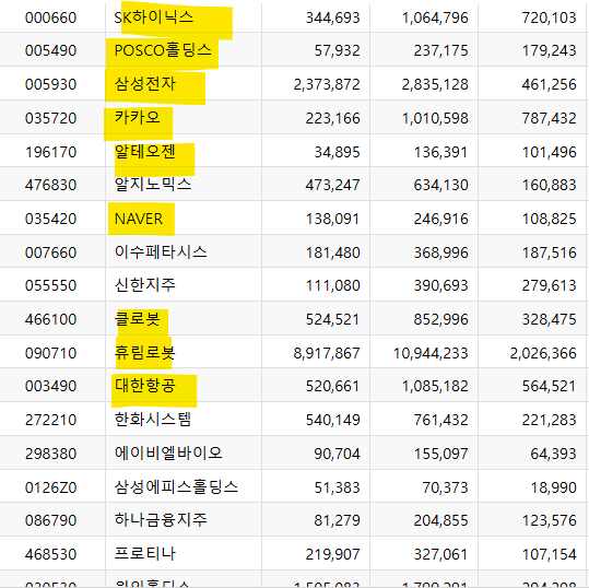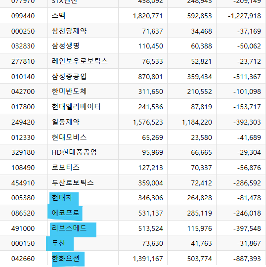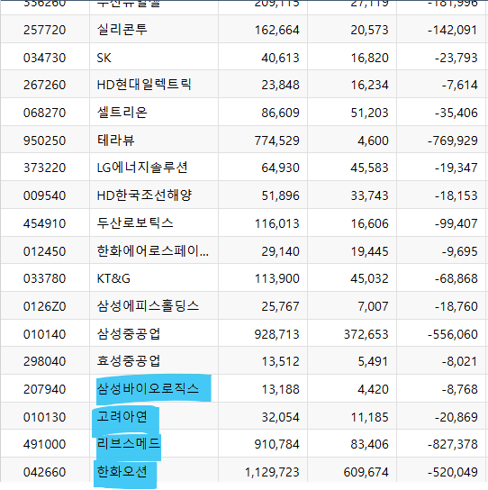 개인은 환화오션, 리브스메드, 고려아연, 두산로보틱스, 삼성중공업, 삼성바이오로직스 등등을 매수했습니다.