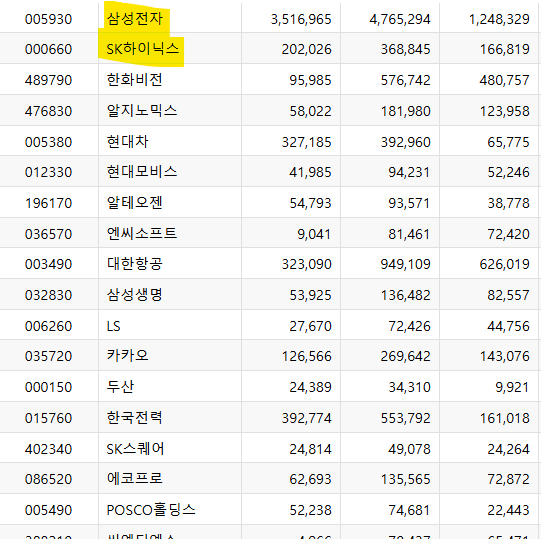 외국인은 SK하이닉스, POSCO홀딩스, 삼성전자, 카카오를 매수했습니다.