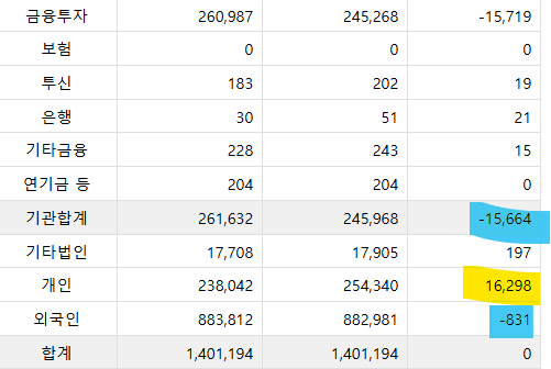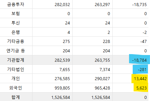 오늘 외국인, 개인, 기관 수급 알아보면서 동향을 알아보는 시간을 가지도록 하겠습니다.