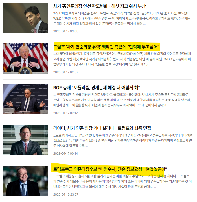 파월 수사와 차기 연준의장 선정 이슈로 금리 방향을 잘 못 잡고 있는 것이 원인으로 저는 생각합니다.