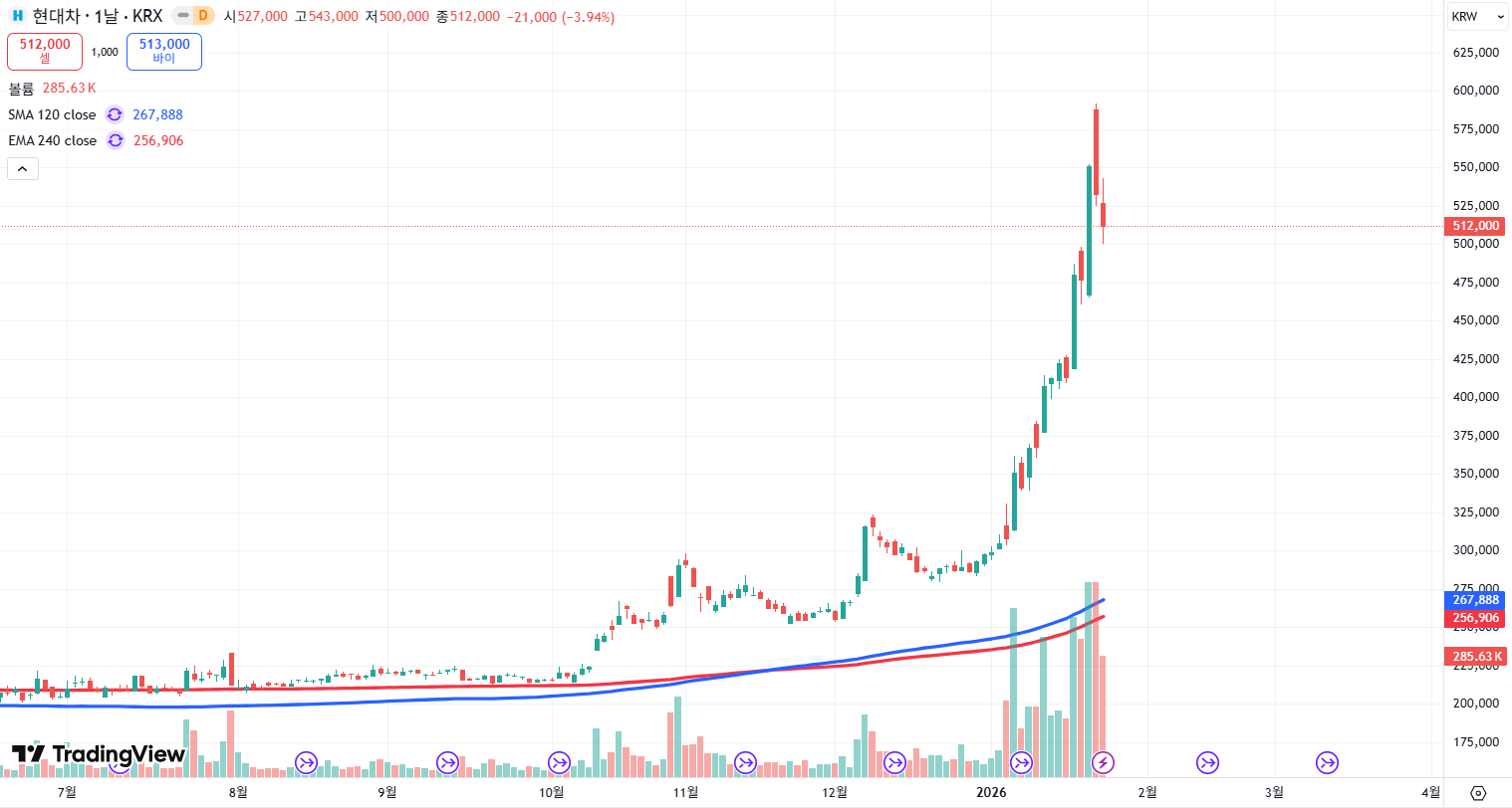 현대차는 이제 적정 주가에 도달했다고 생각하시면 됩니다.