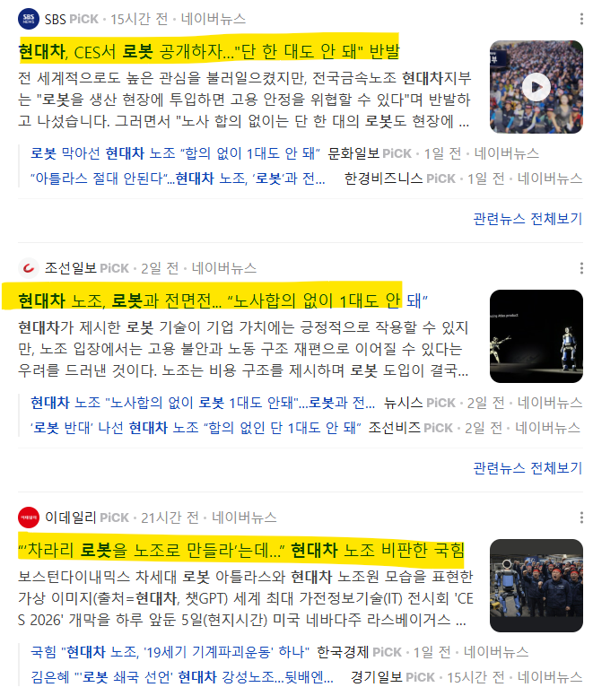노조가 로봇을 반대하기보단 로봇의 도움으로 근무 환경의 개선과 화합과 번영, 공생을 위한 태도를 했었으면 좋았을 텐데 아쉬운 부분입니다. 분명 로봇을 활용하면 근무자에게 도움이 되는 부분이 참을 많을 텐데...