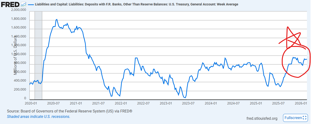 그 이유로 드라마틱하게 늘어나지 않았기 때문에 결국 연준은 가만히 있었고 정부는 돈을 흡수하고 있으니 유동성 자산이 줄어들면 미국 증시가 조정받는 흐름이 나왔을 겁니다.