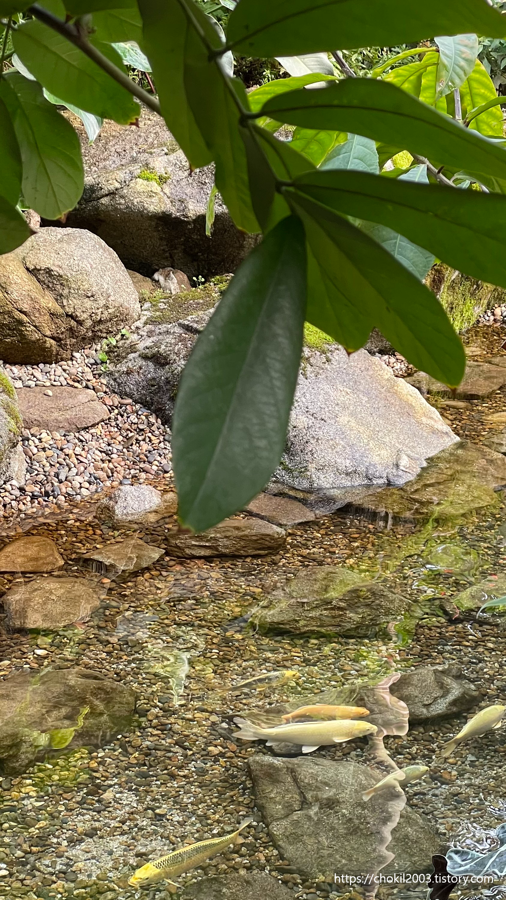 중간에는 인공 강이 흐르는데요! 여기에 거북이도 있고 잉어도 있습니다!