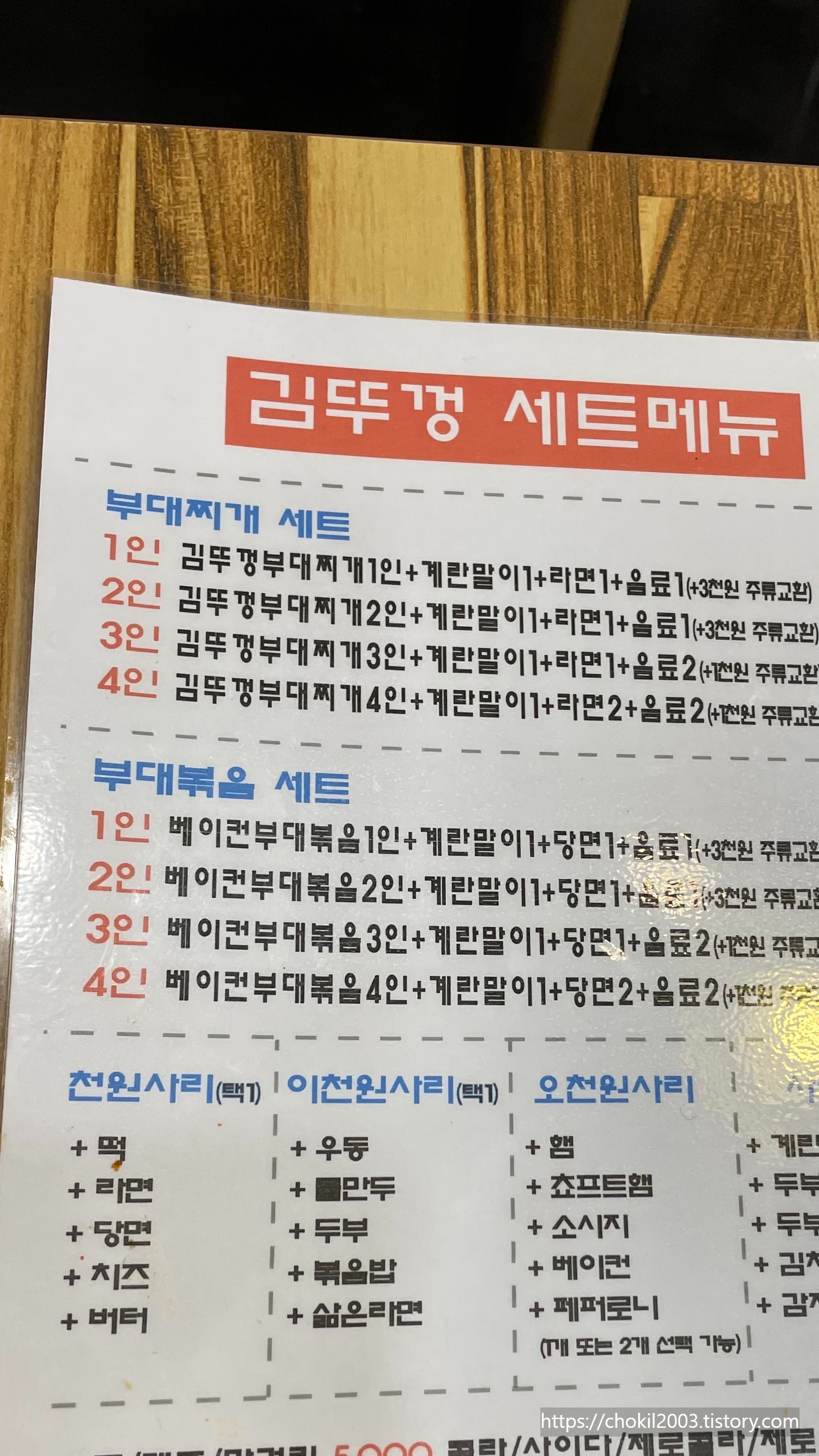 오늘은 세트보다는 단품이 땡겨 김뚜껑부대찌개를 2개 주문했습니다.